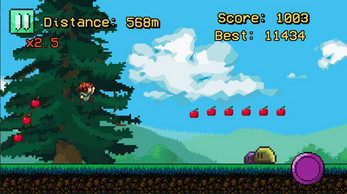 Run as Mafalda in this pixelated endless runner! Collect apples to boost your score and dodge slimy slimes to stay alive as long as possible!